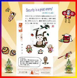 左記の私のハガキは、パッチワーク作品の干支のお猿さんです。