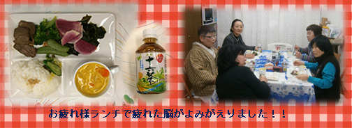 | 弥左衛門の娘、小桃ではありませんが・・勉強した後の食事の美味しいこと!作って下さった先生に感謝しながら、big smile で皆様と食事をしました。 |