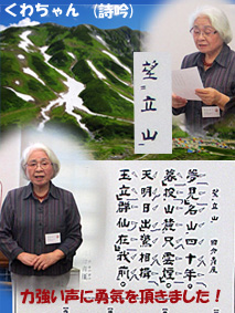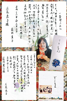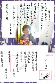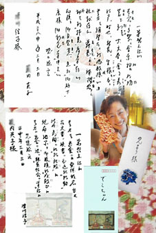 | くわちゃんには、お手本を見せて頂き、感謝している事と、努力によって極められた詩吟に感服し、又色々な手芸も嗜まれている事を書きました。くわちゃんからは、パッチワークの事や、英会話に優れ羨ましいと書いて下さっています。励ましのお言葉として、精進したいと思います。 |