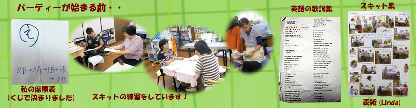 | 基本の基クラスと一緒になって初めてのパーティで、歌あり、スキットあり、A4課題のペアワークありと・・盛り沢山の内容になっています。パーティでが始まる前からスキットの練習をするなど、皆熱心に取り組んでいます。10時過ぎになりました。パーティー・・スタート!!先生のお話の後、口ならしに英語の歌を、歌い、楽しいスキットが始まりました。 |