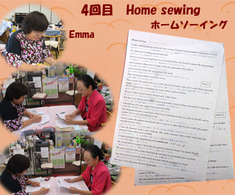 | ホームソーイングの通信教育で、Emmaは、1番目、袋物・ピンクッション・鍋つかみ2番目ズボン 3番目チュニック4番目ブラウス(最終作品)を提出して、その作り方や出来上がりの評価、使いにくくて、大幅に直した事、嫌だと思っていたズボンが一番はきやすくて気に入った事などを教えてくれました。基本を知らないからと通信教育を受けたようですが、思ったような内容ではなく、材料の用意などで、かなりの費用がかかり、その上終了証書の費用も別と言うことで、先生になるわけでないので必要なかったなと思ったようです。 |