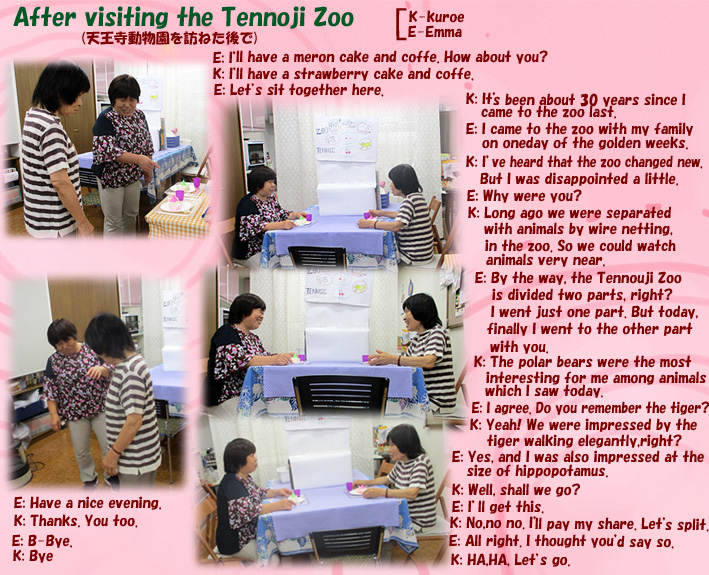 動物園の帰りに、KとEはお茶を飲みながらお話をします。