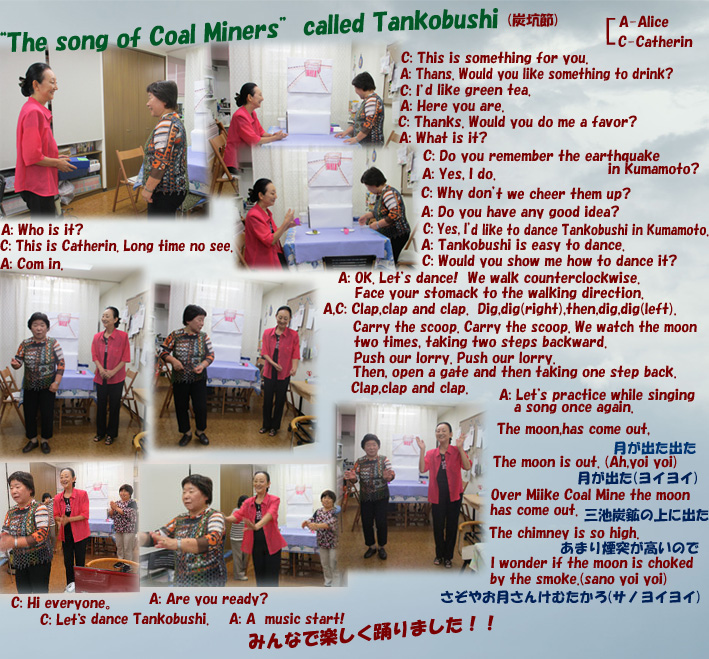 そこで、皆と一緒に三橋美智也の炭坑節で踊り、楽しみました。 |