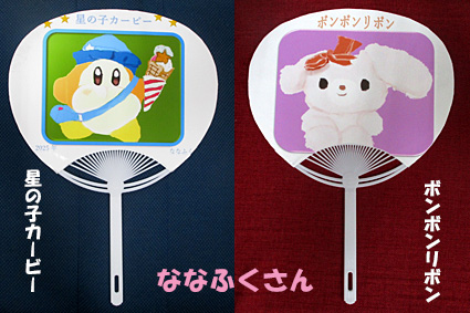| 星の子カービーはゲームソフトのキャラクターなんですね?お孫さんが喜ぶうちわで、今年の夏は楽しく過ごせそうですね!ボンボンリボンはウサギさんなんですね?可愛いです! |