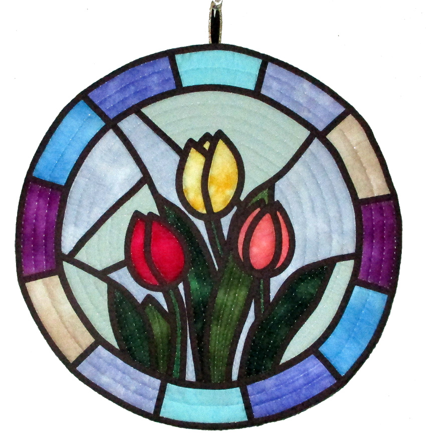 | 2020.01.27 1月の作品 チューリップのステンドグラスキルト (35×35) |