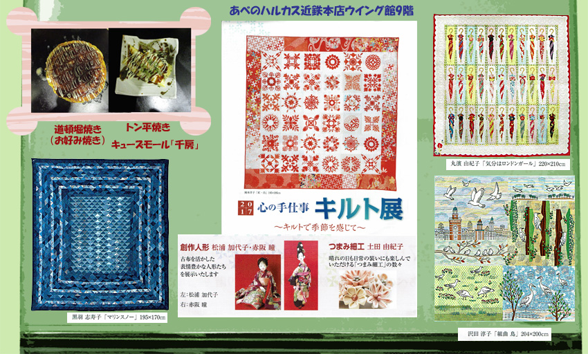 | 2017.07.16 「海遊館」で多くの魚を見て楽しんだ後、あべのハルカス近鉄本店ウイング館で「キルト展」を見てきました。 |