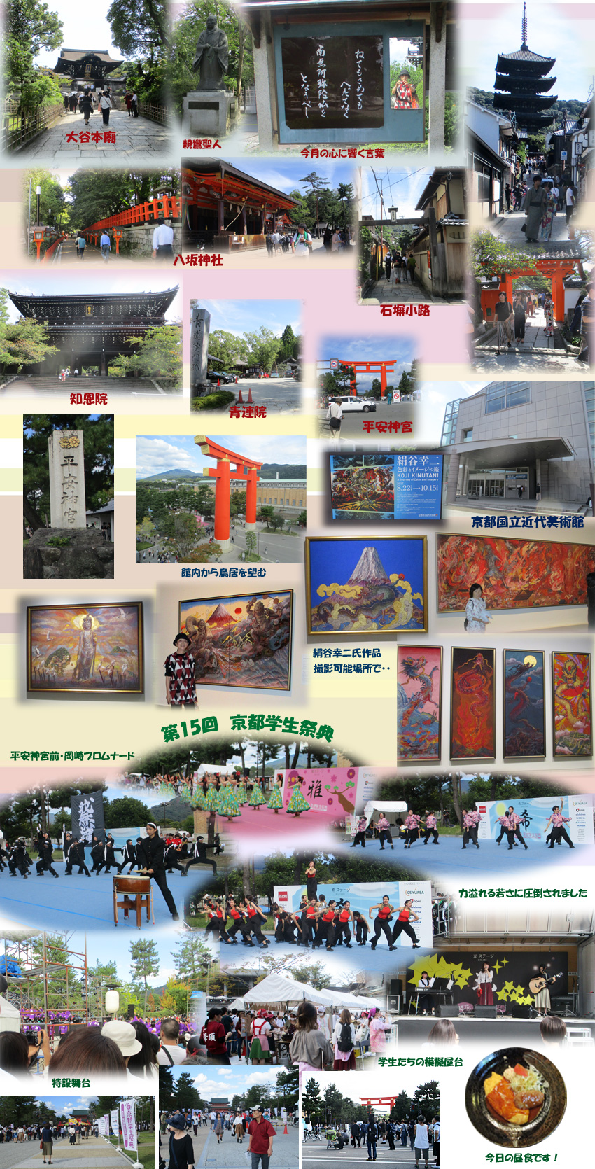 | 2017.10..08 大谷本廟をお参りして、「絹谷幸二 色彩とイメージの旅」を鑑賞して、京都学生祭典を楽しみました。 |