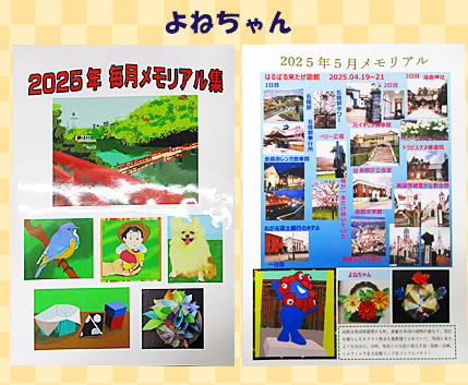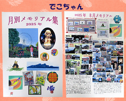 | 表紙は、パンダを見たり、ハウステンボスや軍艦島等に行った事に、手芸作品等を合わせました。8月を選んだんは、近年にない猛暑の中、万博に15回も行った事と、33か所のお参りでダウンしそうになった事が、心に残りました。でも楽しい1年でした! |