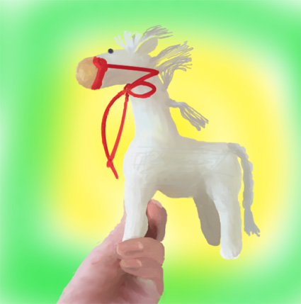 友人から頂いた、今年の干支、編みぐるみの「午」をクリスタ画にしました。編み目を描く事が出来なかったのが残念です。この作品も12年前に作られたようです。今年は私の傍で、元気に過ごせるように見守って欲しいと思います。 |