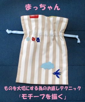 刺繡糸は、それ専用の針を使わなかったなら、通すのは大変だったと思います。昔は継ぎはぎしていたのに、今は刺繍で…可愛いですね。 |