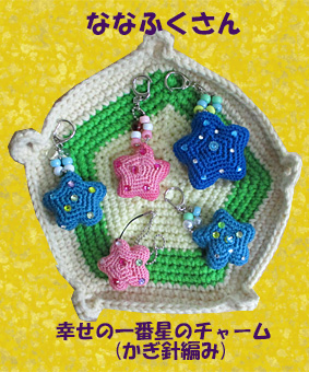 先月の「幸せの一番星」を小型にして、飾りを付けてチャームに…バッグに付けてお出掛けして、幸せを皆に分けてあげて下さい! |